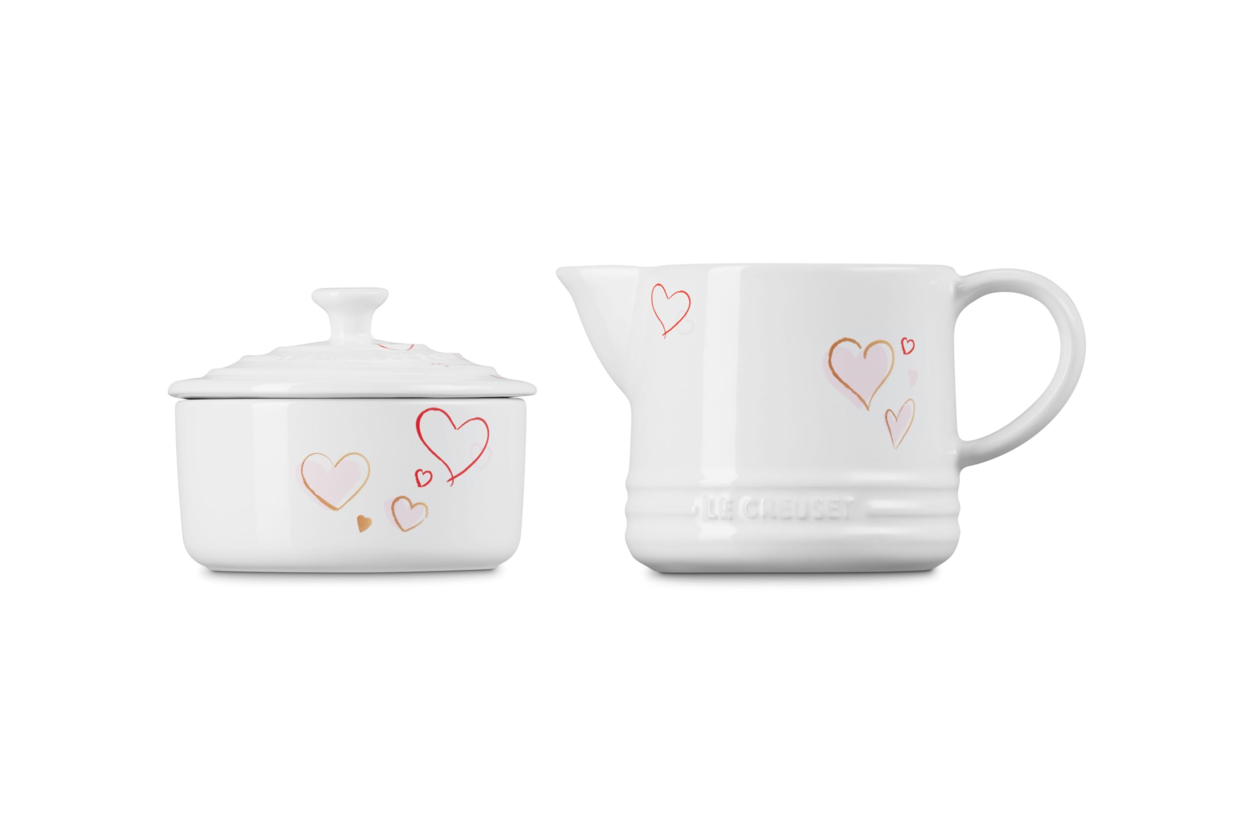 Le Creuset Mon Coeur Collection Stoneware Signature Cream And Sugar Set, White with Hearts