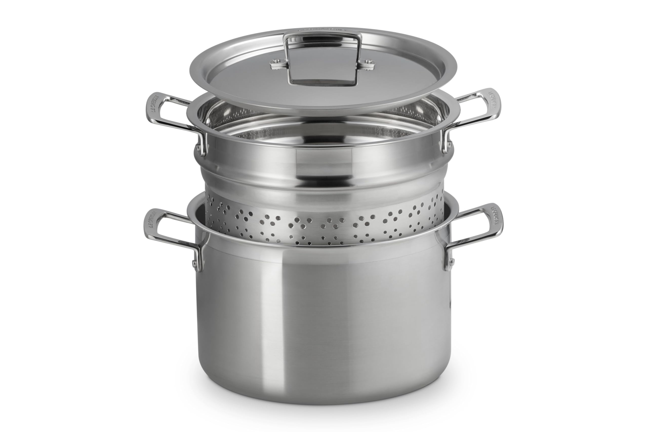 Le Creuset Stainless Steel Classic 3-Ply Deep Pasta Pot and Sieve, 7.5qt—